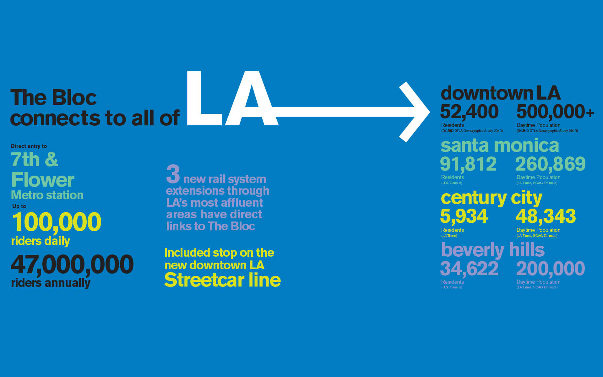 The Bloc leasing book reflects a vibrant and urban brand. It showcases a diverse mix of thoughtfully curated shops, artisans, premier retailers (including a Macy’s flagship store), restaurants, bars, open-air green spaces and entertainment. The Bloc is also home to the Sheraton Grand Los Angeles hotel, Alamo Drafthouse cinema and a 722,000 square-foot, creative-focused office tower.